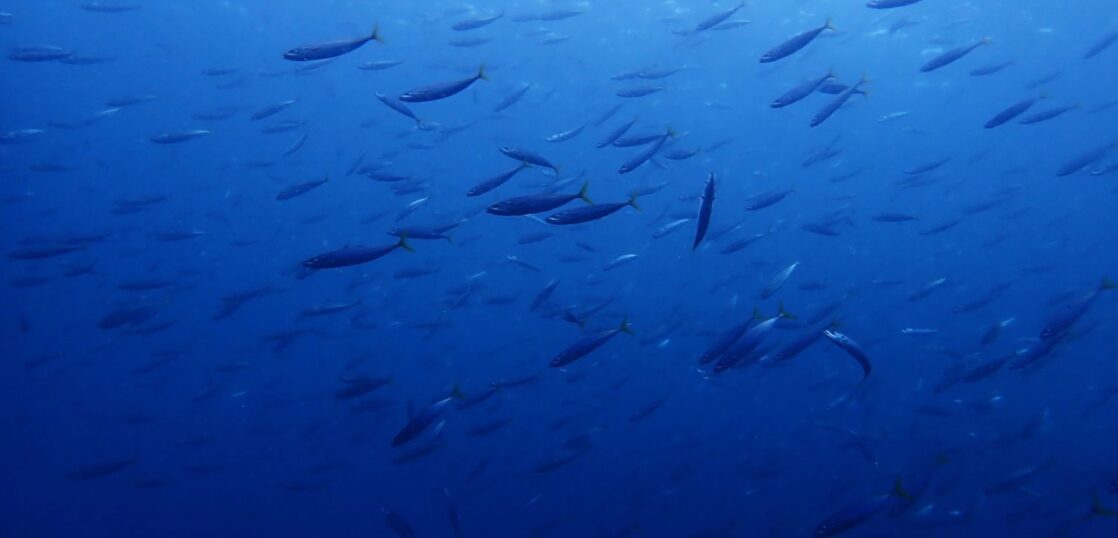 そして遥か上空には大きなカマスサワラが数匹。