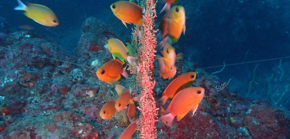 根から普通に眺めただけではイサキやタカサゴの群れは見当たらず。